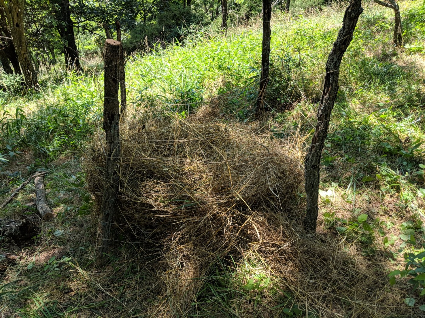 Gather a bunch of base material. The farmer working the pasture recently cut and dried the pasture, and baled it into hay. However, if you have ever walked behind an harvester / baler / etc, you will know that the mechanization misses some of the material. For this project, I grabbed the land rake and snagged a bunch of the leftover hay.