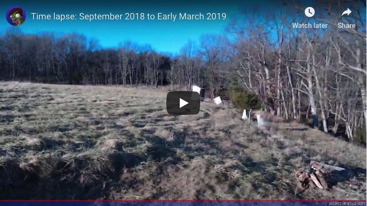 This is a 3 minute time lapse from 2 September 2018 to 9 March 2019. You will probably see minimal changes, but when the snow comes and melts away, its kinda cool. I also like watching the tree sag under the weight of the snow, then recover. Deer wandering around is also fun, but they go quickly. Fall came late this year and the colors start around November (there is a time stamp on the bottom right) but a storm came through and knocked it all off.